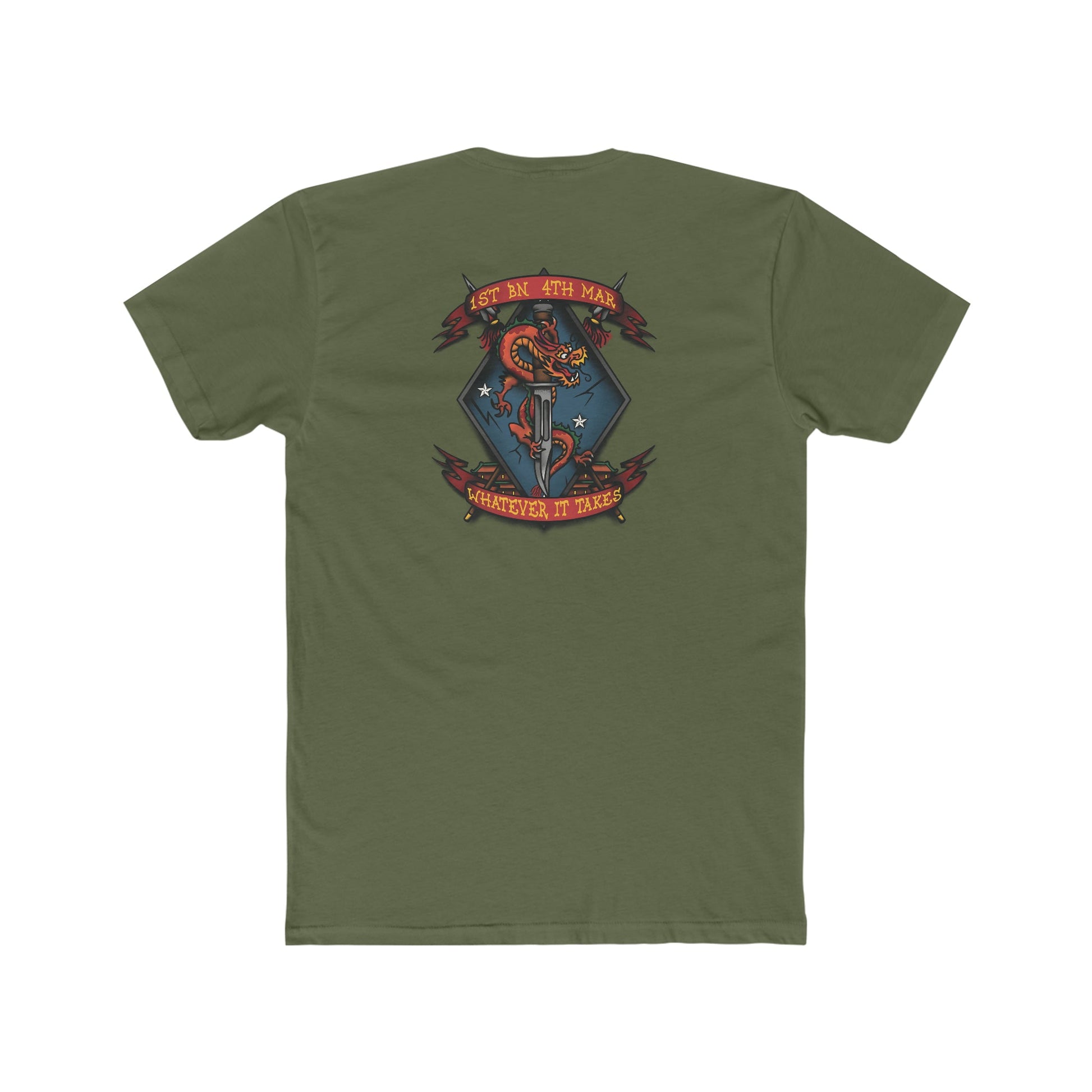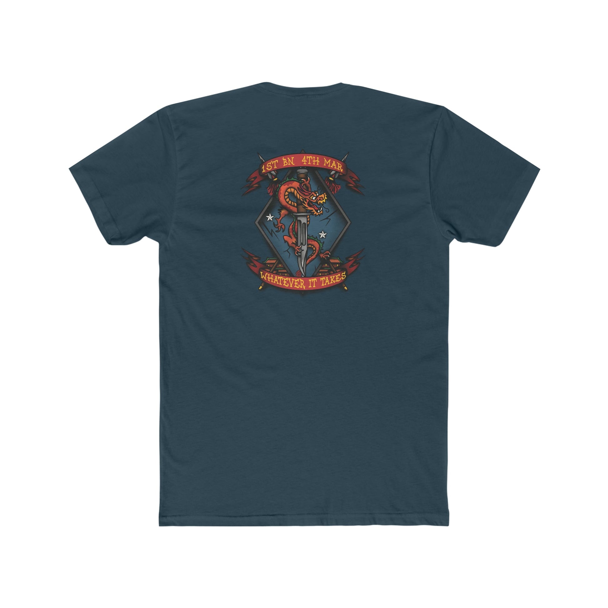 The emblem features a K-Bar knife, dragon, and big blue diamond of the first Marine Division.